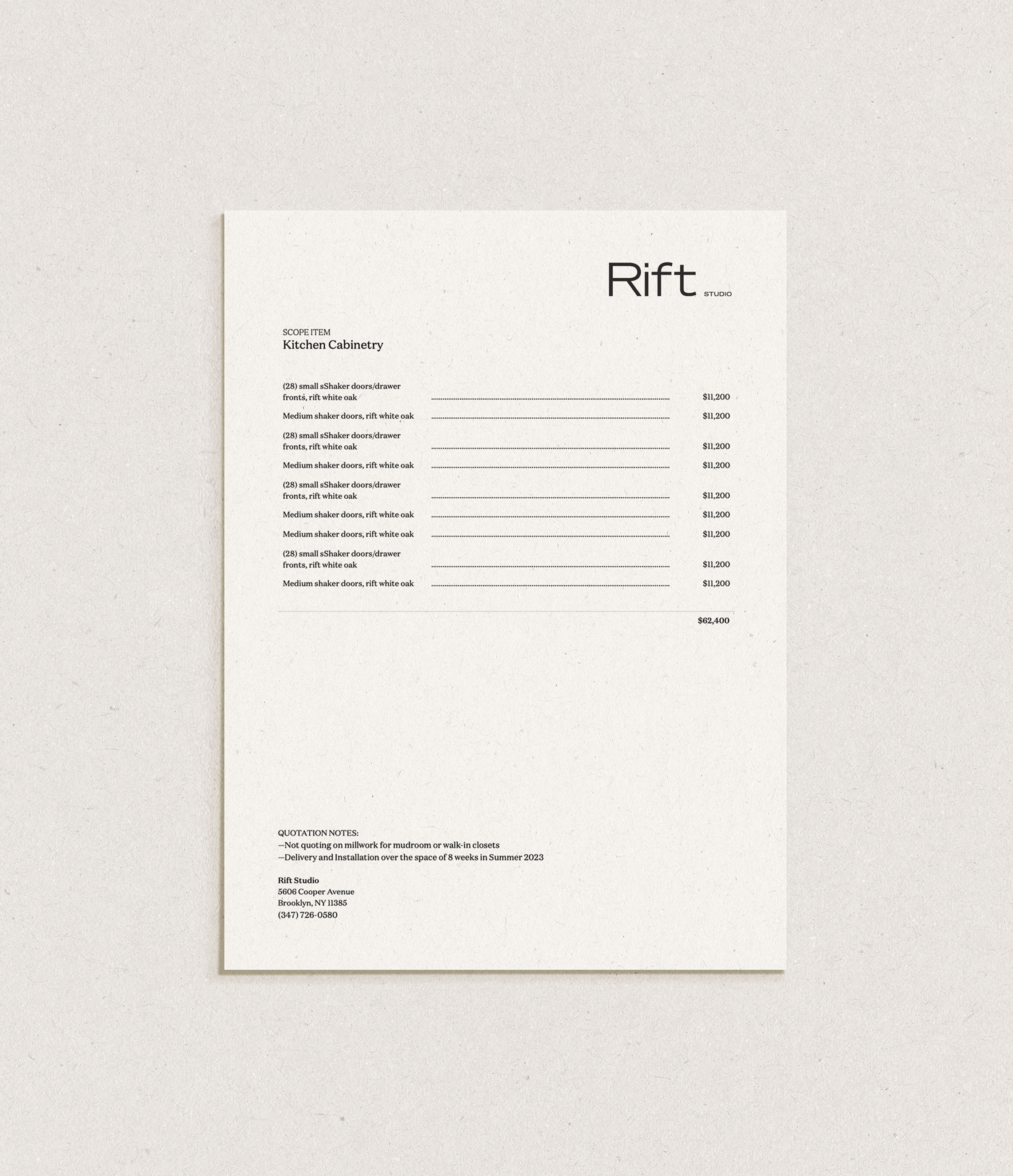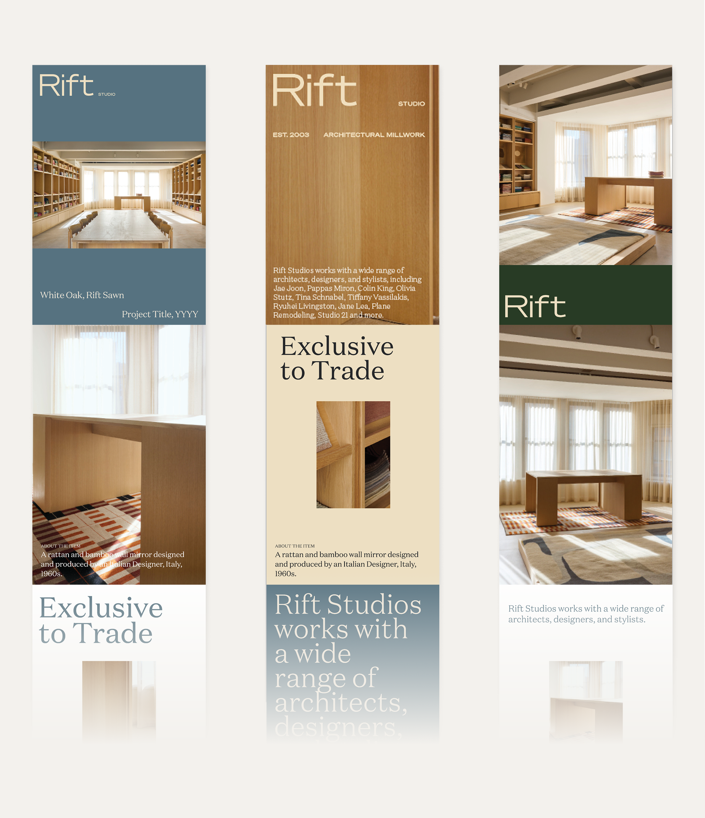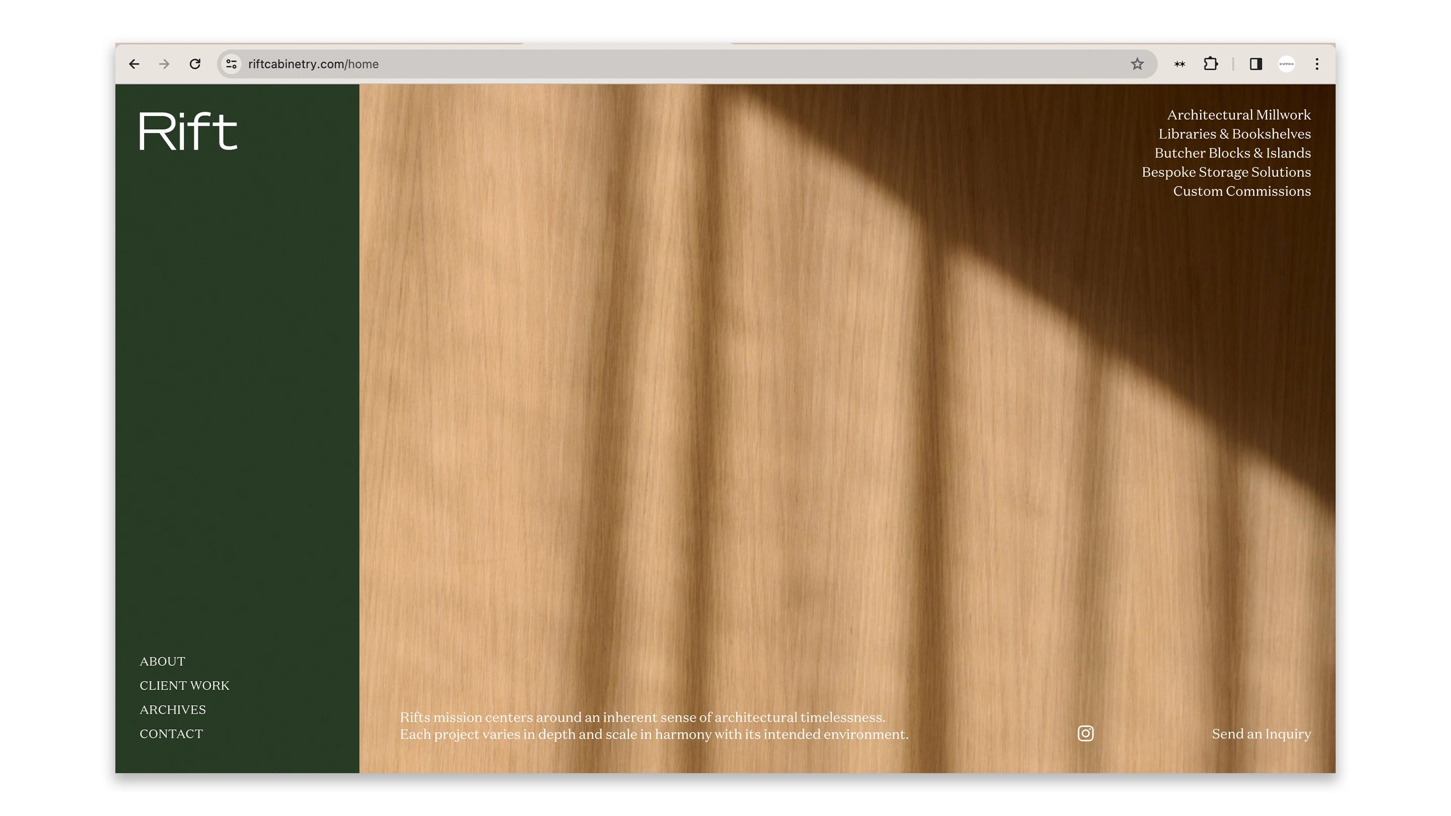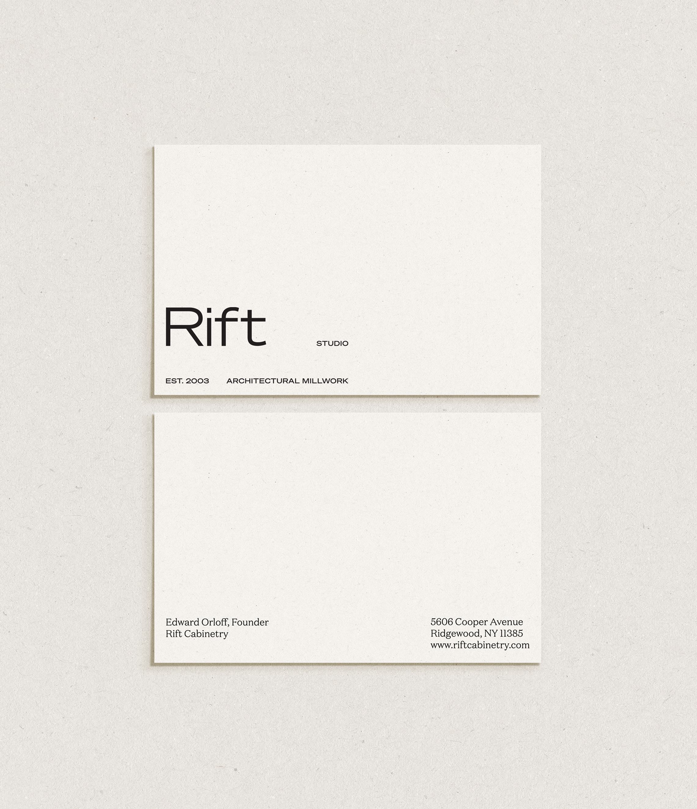 Rift Cabinetry is a specialty millwork fabricator servicing high-end, residential libraries and storage solutions. Its founder, Edward Orloff, is also a literary agent; together Rappold created an elegant, full-circle world of balance between type and layout.